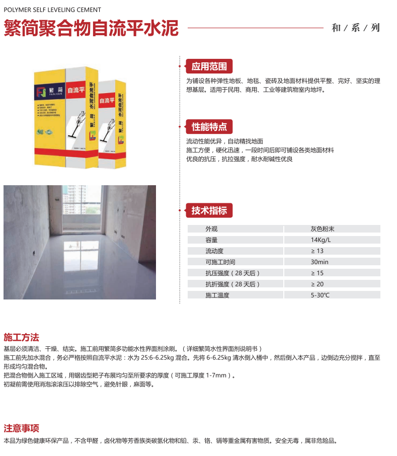 為鋪設各種彈性地板、地毯、瓷磚及地面材料提供平整、完好、實的理想基層。適用于民用、商用、工業(yè)等建筑物室內地坪。